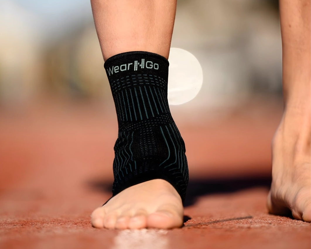 Ankelstøtte fra Wear’N’Go kombinerer støtte og kompresjon med integrerte silikonputer som hviler rundt ankelknokene. Det gir ekstra komfort, støtte og trykkavlastning der mange kjenner ubehag.